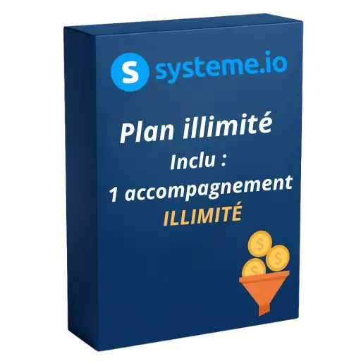 Tout illimité sur Systeme.io, fonctions + accompagnement.